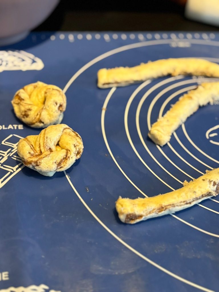 - Rulla till varje remsa lite innan den snurras, det hjälper degen att hålla ihop.